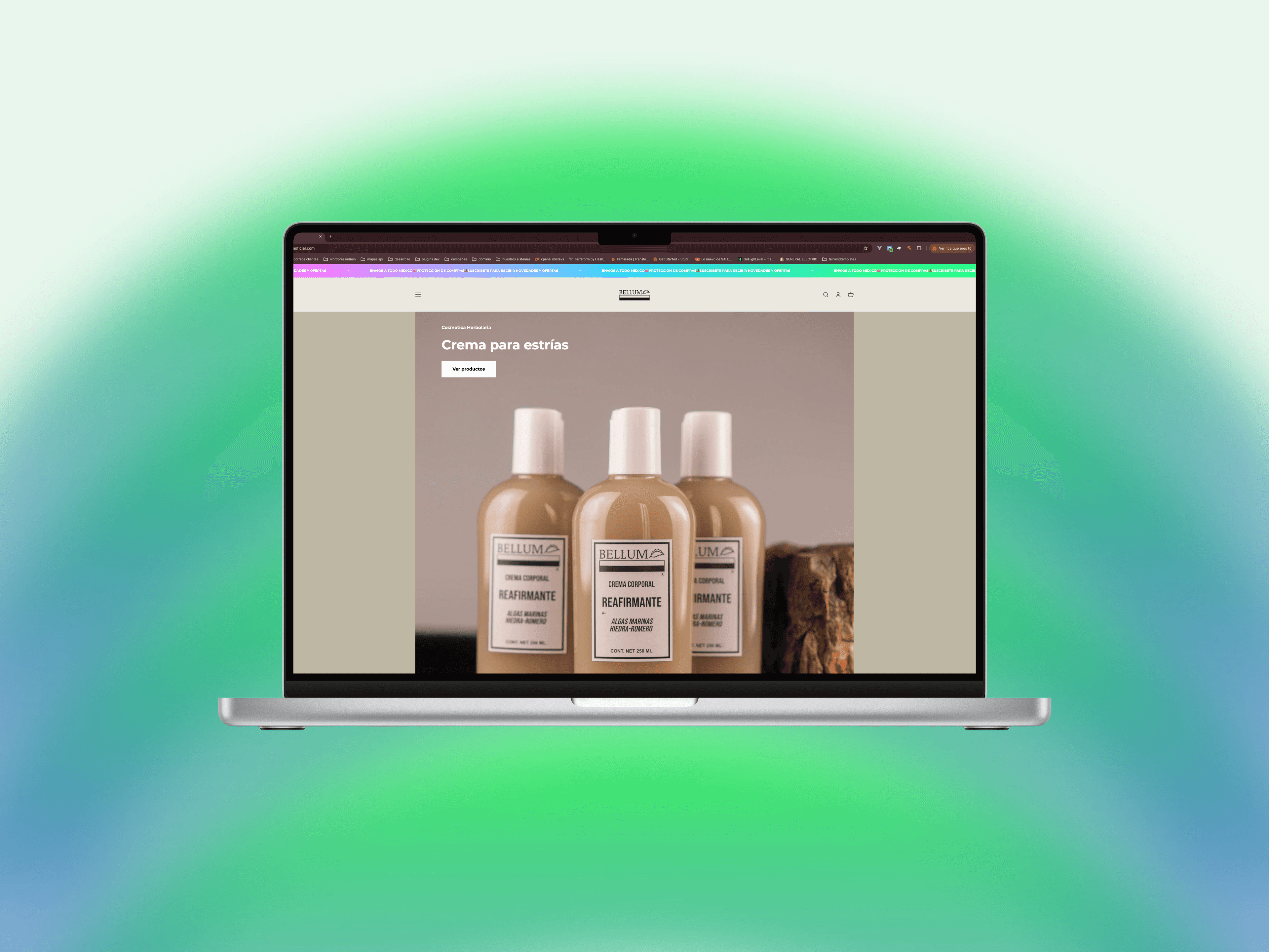 Realizamos un rediseño estratégico de la tienda en línea de Bellum, cuidando cada detalle visual para que reflejara fielmente la identidad de la marca. Se seleccionó un tema en Shopify que se adaptara a los colores, estilo y esencia proporcionados por el cliente, optimizando al mismo tiempo la navegación y conversión.