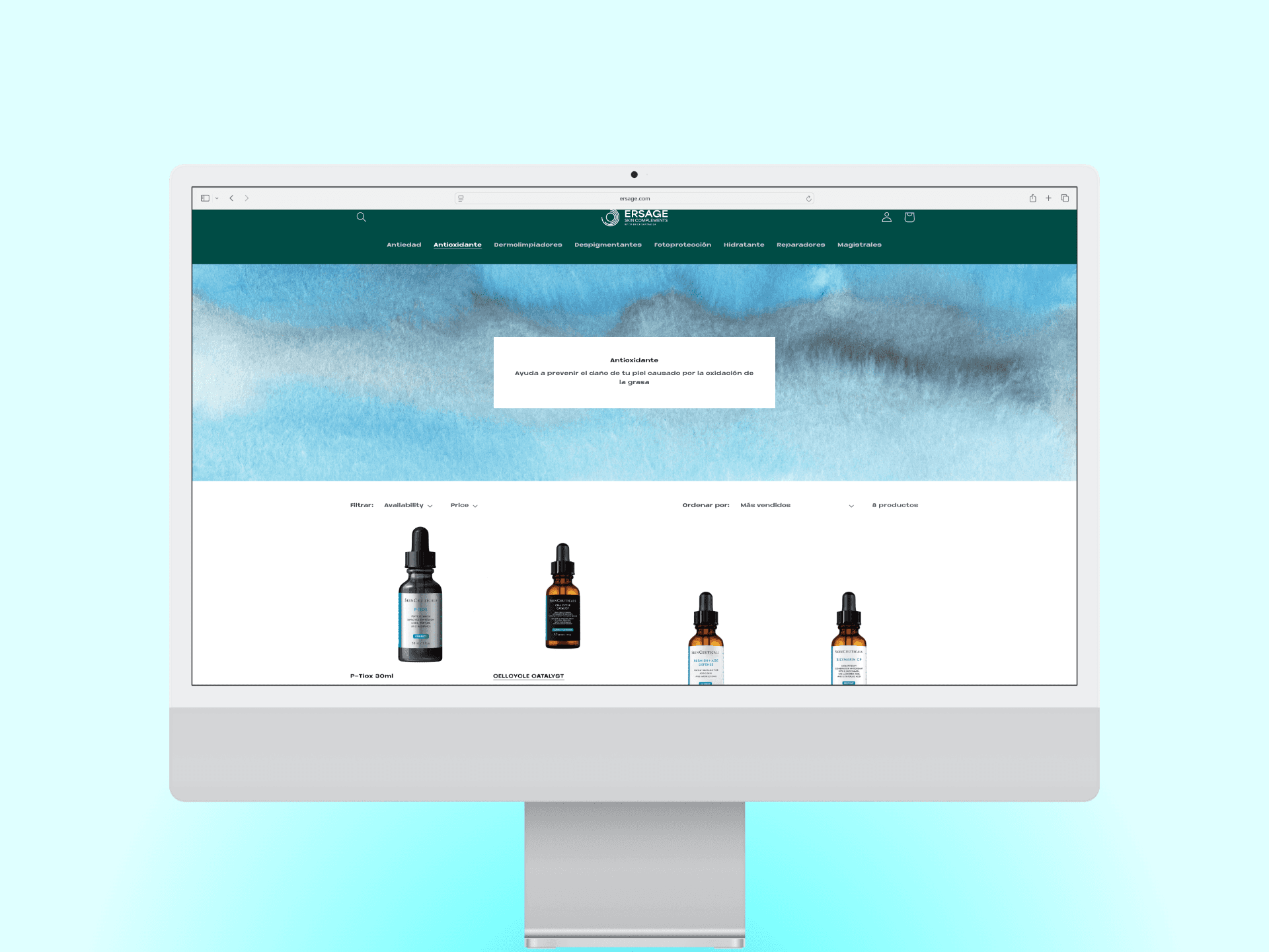 Implementamos Shopify como plataforma principal para centralizar las operaciones de Ersage, asegurando una experiencia de compra fluida tanto en línea como en tienda física. La sincronización automática del inventario y una estrategia de promociones conectaron ambos canales de venta para mejorar la conversión y eficiencia operativa.